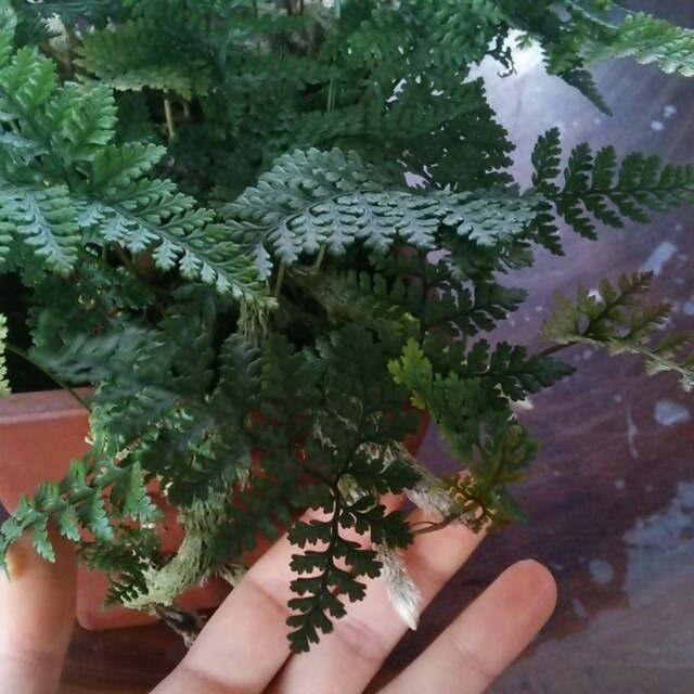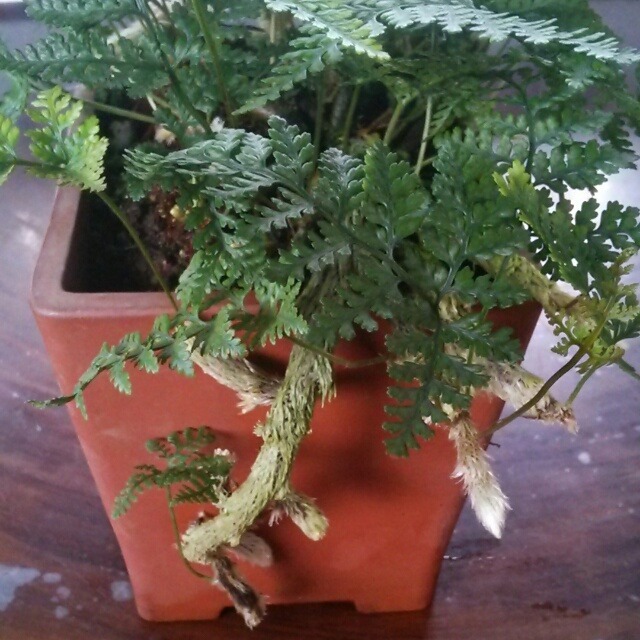 【ずっしりとした角鉢に入ったトキワシノブ】