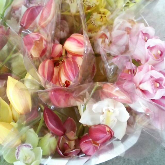 種類も豊富なシンビジュームを使用した『ちょっと訳ありミニ花束』!