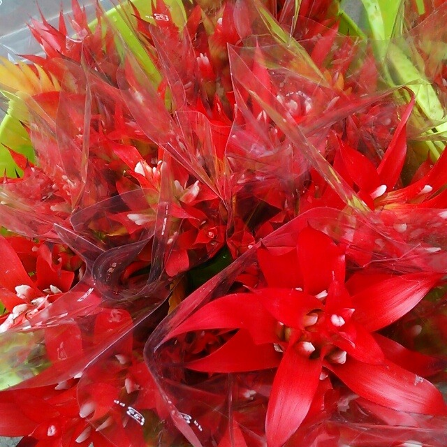 今まさに一際目を引く赤いアナナスが揃い踏みです♪