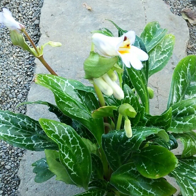 斑入り葉が美しい薄紫の花を咲かせる山野草で、暖地では外でも◎