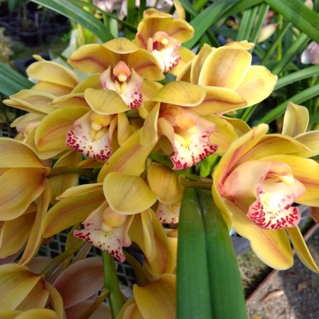 オリジナルシンビジューム・オレンジバーミリオンの大鉢です。